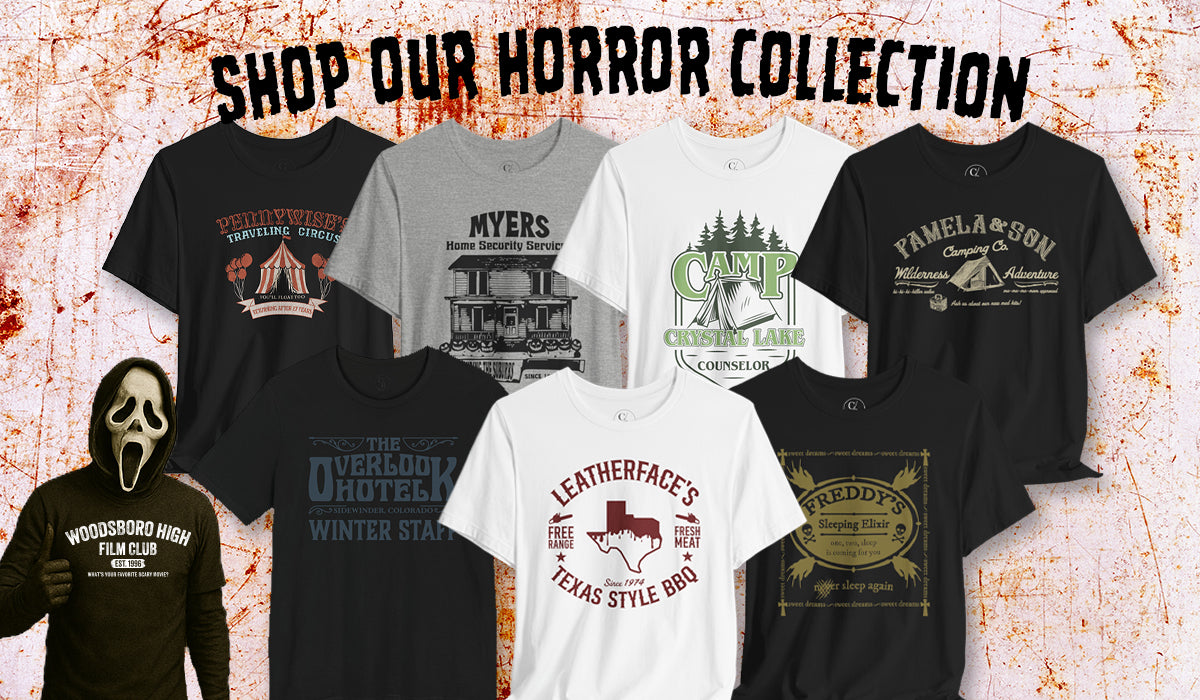 Our horror collection of t-shirts celebrates iconic characters and chilling moments from classic and modern horror films. Each shirt features bold, original artwork inspired by some of our favorite horror movies—perfect for true horror fans. Designed for comfort and crafted to last, these tees are a must-have for conventions, movie nights, or everyday scares.